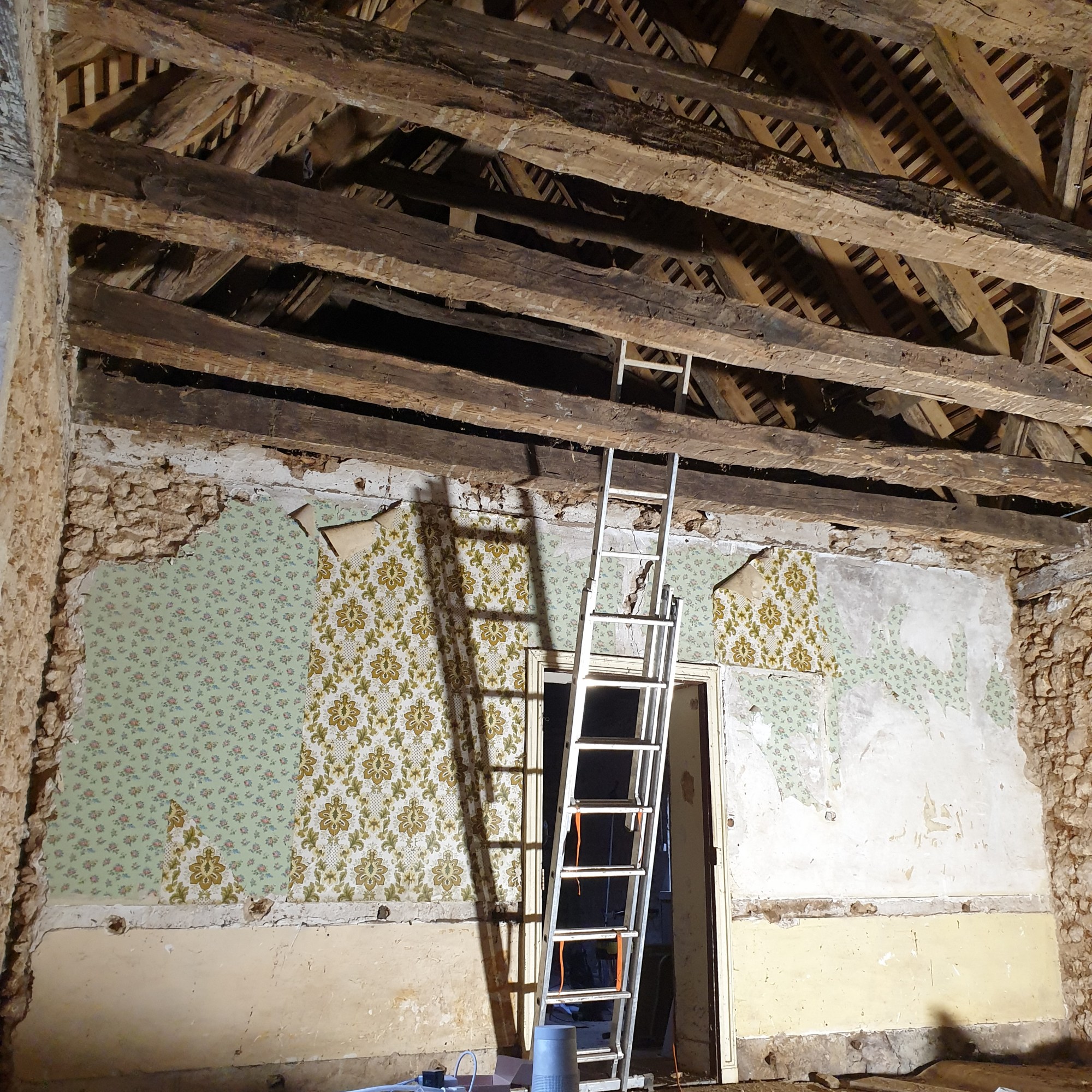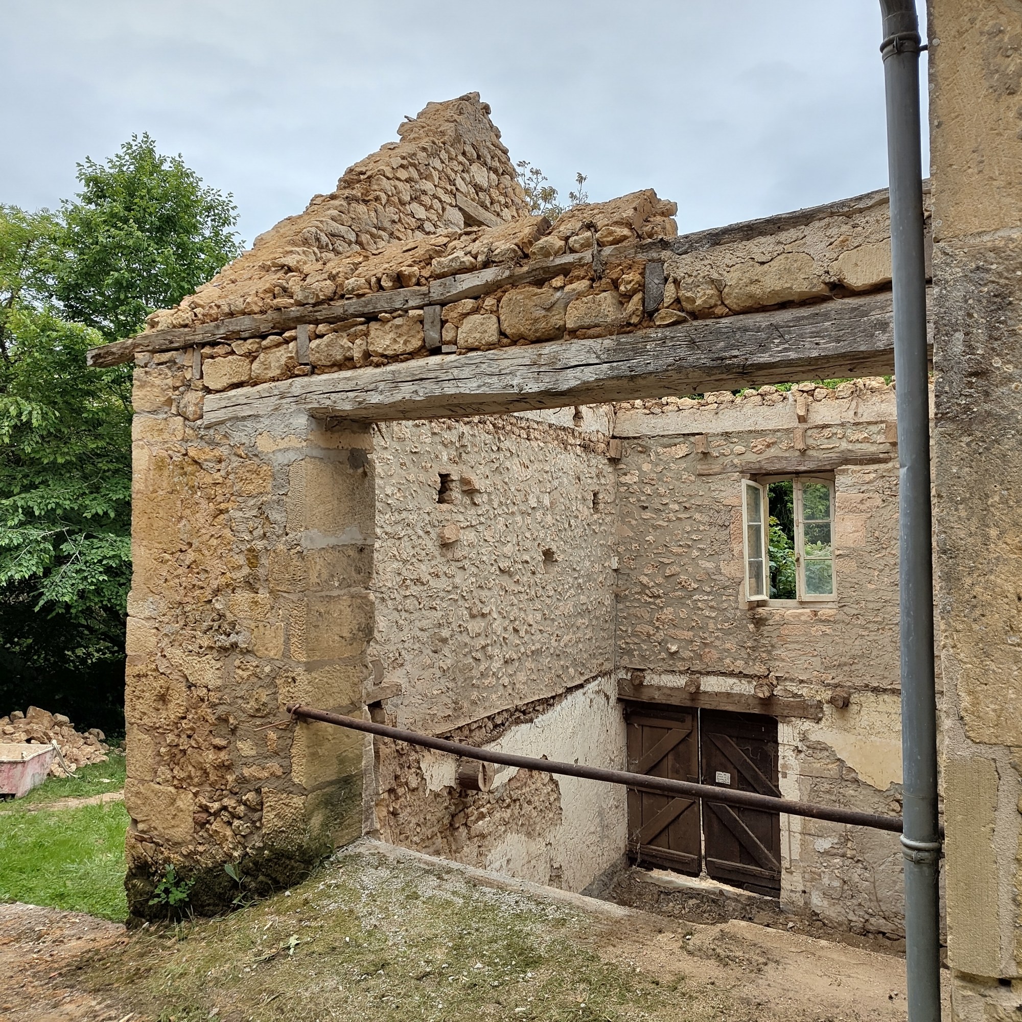 Nous avons réemployé les pierres des murs qui ont été démolis pour les nouveaux éléments de maçonnerie et les vieilles solives des anciens planchers sont celles que vous trouverez sur le parking ou en élément décoratif dans le gîte ou la grange !
